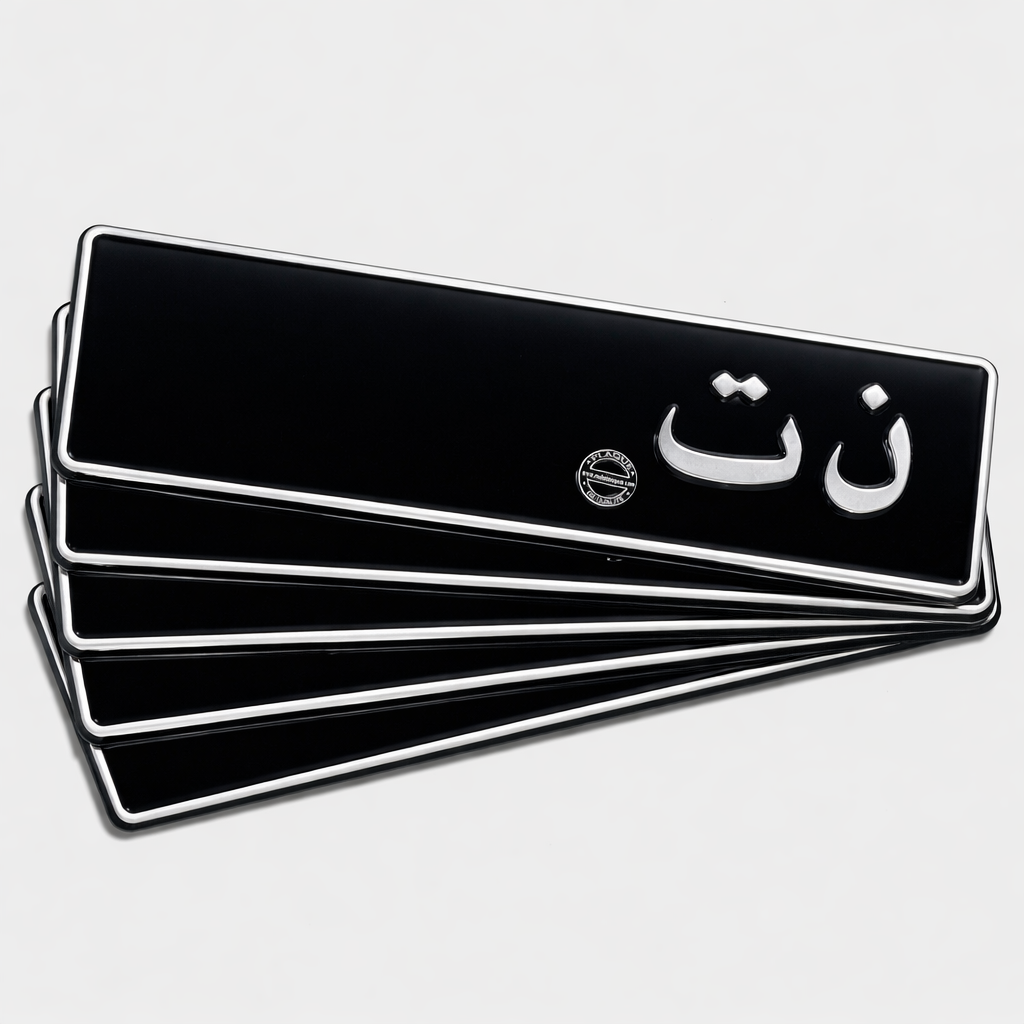Lot de plaques embouties « ن ت », couleur noir, prêtes pour la fabrication de plaques d’immatriculation.